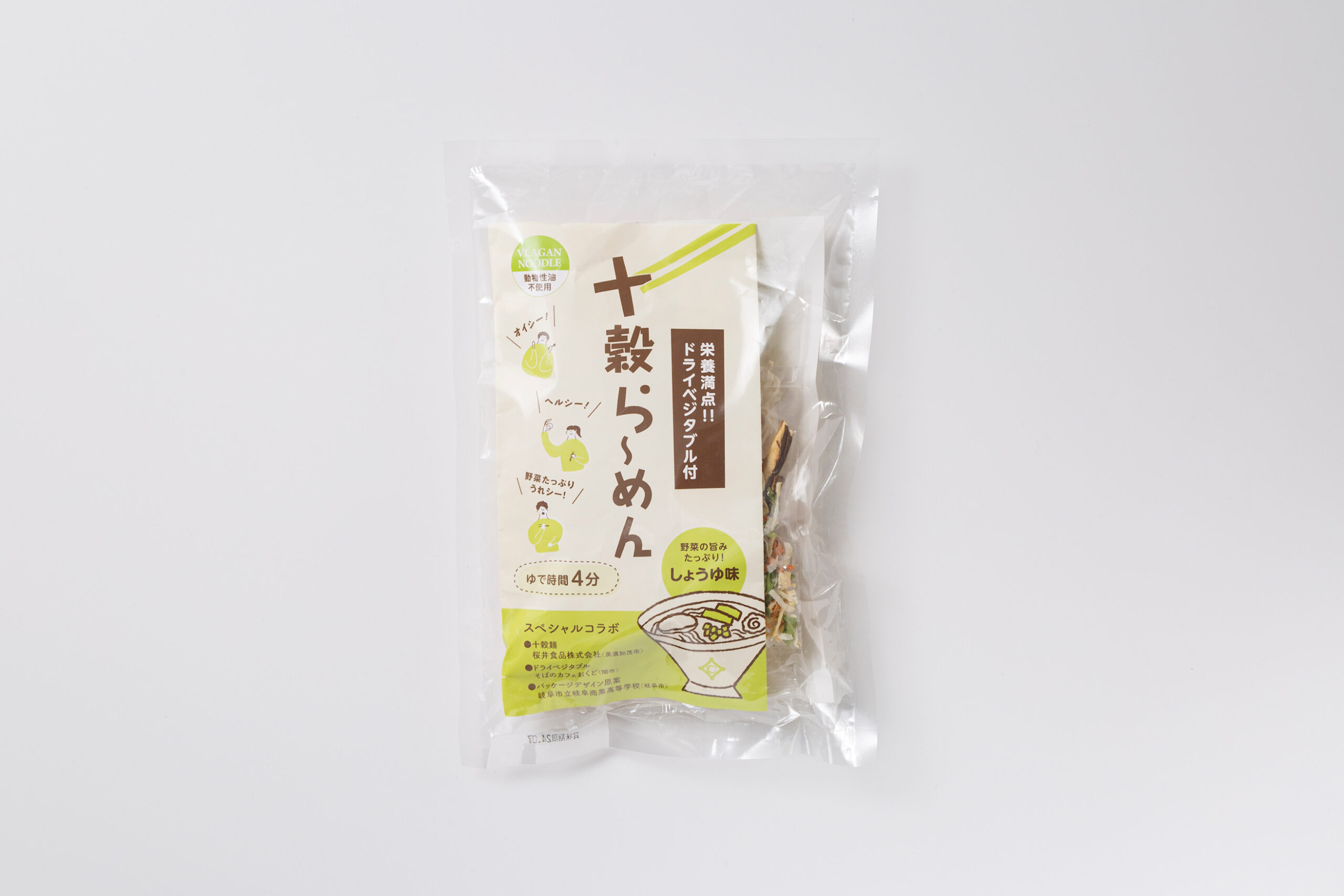 この想いは、地域の農業が抱える課題とも結びついた。農家を訪ね歩く中で出会った、味は一級品ながら形などの理由で規格外となってしまう野菜。谷重さんは、それらを「乾燥野菜」として活用することで、素材の旨味を凝縮させつつ、長期保存が可能な商品へと形を変えた。岐阜の老舗メーカーが手掛ける国産小麦の麺と、植物性原料のみで仕上げたスープ。多忙な日々を送る人々へ、心と体が喜ぶ一杯を届ける「十穀らーめん」はこうして誕生した。