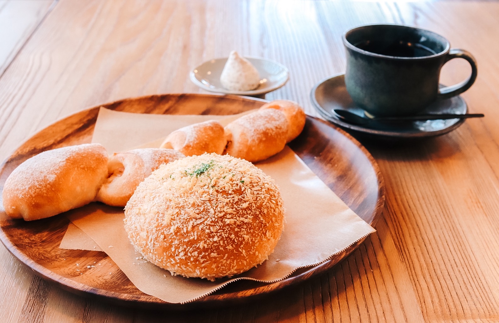 一方、コーヒーは加藤さんが担当。岐阜の名店『カフェ・アダチ』(岐阜県関市)で本格的に学んだ技術で丁寧に淹れる一杯は、パンの美味しさを一層引き立てる。一般的にパン屋では脇役になりがちなコーヒーだが、ここでは「パンの専門家」と「コーヒーの専門家」がそれぞれ高め合う主役同士なのだ。