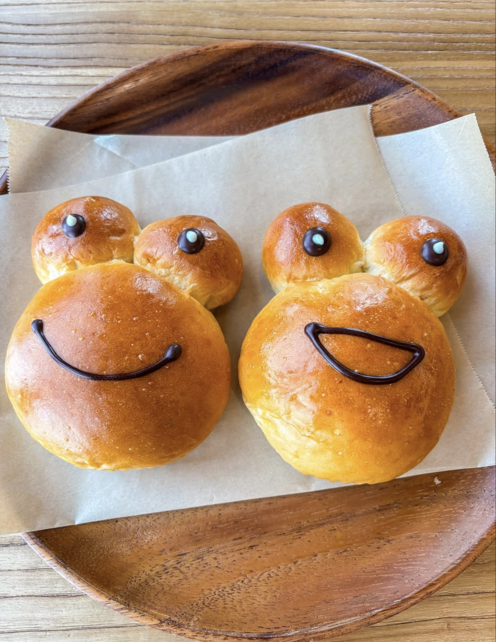 店頭には、食パンはもちろん、菓子パンから総菜パンまで、奥様が研究や試作を重ねて考案したバリエーション豊富なパンの数々がずらりと並ぶ。お店のイメージキャラクターでもあるカエルをモチーフにした「カエルチョコパン」や「カエルあんぱん」、大人気の「ベーコンエピ」や「焼きカレーパン」、季節に合わせた「キューブパン」など、まさに老若男女問わず、本格的な味を楽しむことができる。